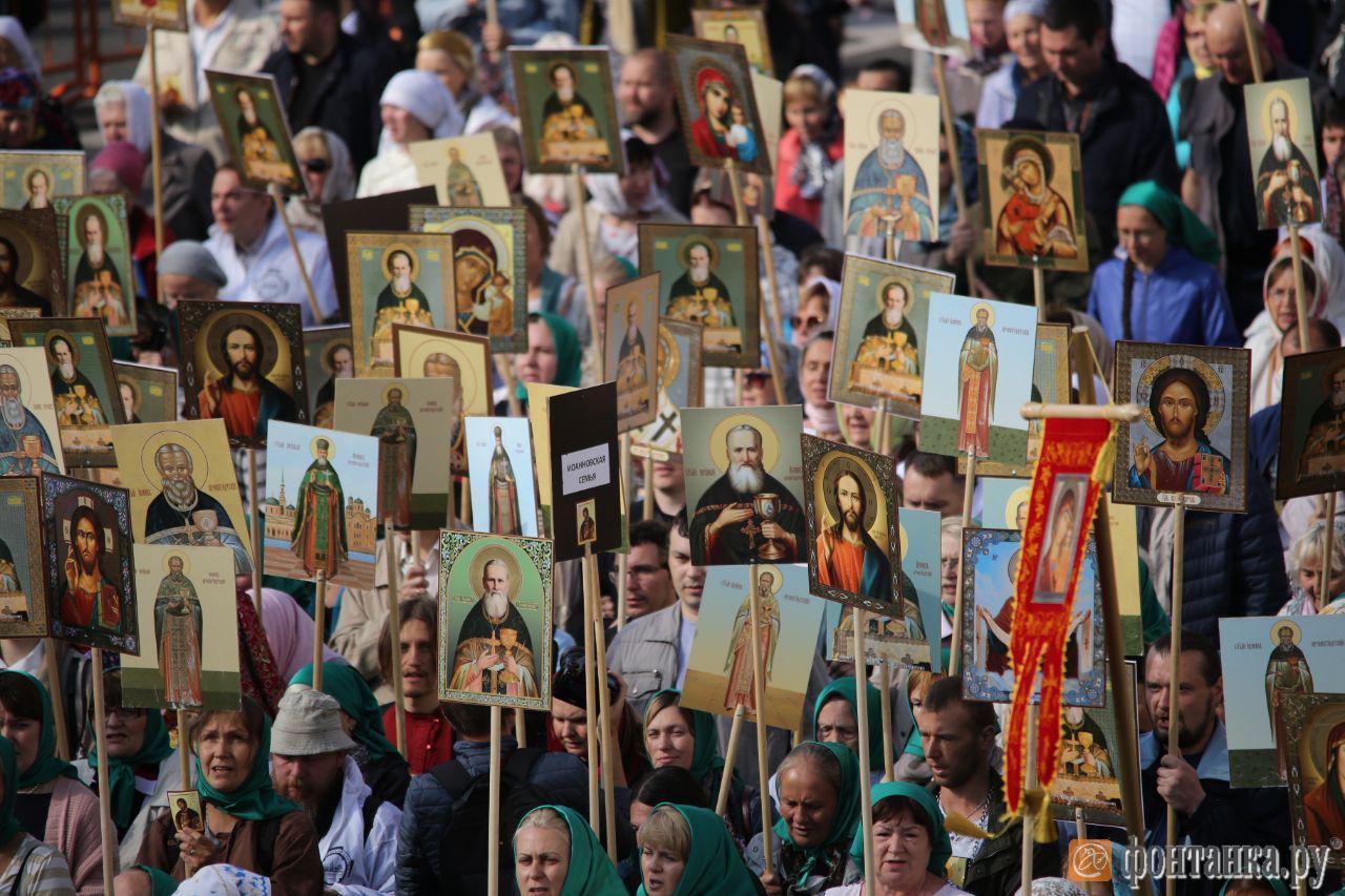 В Петербурге колонна крестного хода в честь дня перенесения мощей Александра Невского дошла до Александро-Невской лавры днем 12 сентября.