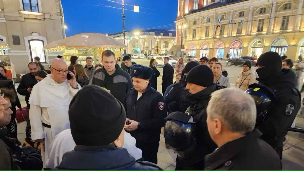 Инцидент между петербургскими католиками и полицейскими произошел вечером 8 апреля во дворе католической базилики Святой Екатерины на Невском проспекте. Богослужение Навечерия Пасхи (католики в этом году встречали один из главных христианских праздников в ночь на 9 апреля) традиционно начинается с благословения огня и зажжения пасхальных свеч вне стен храма. Перед началом этого священного обряда к верующим, собравшимся возле базилики, внезапно подошли бойцы ОМОНа, которые сейчас ежедневно патрулируют город (после взрыва в кафе на Университетской набережной силовиков на улицах Петербурга стало заметно больше).