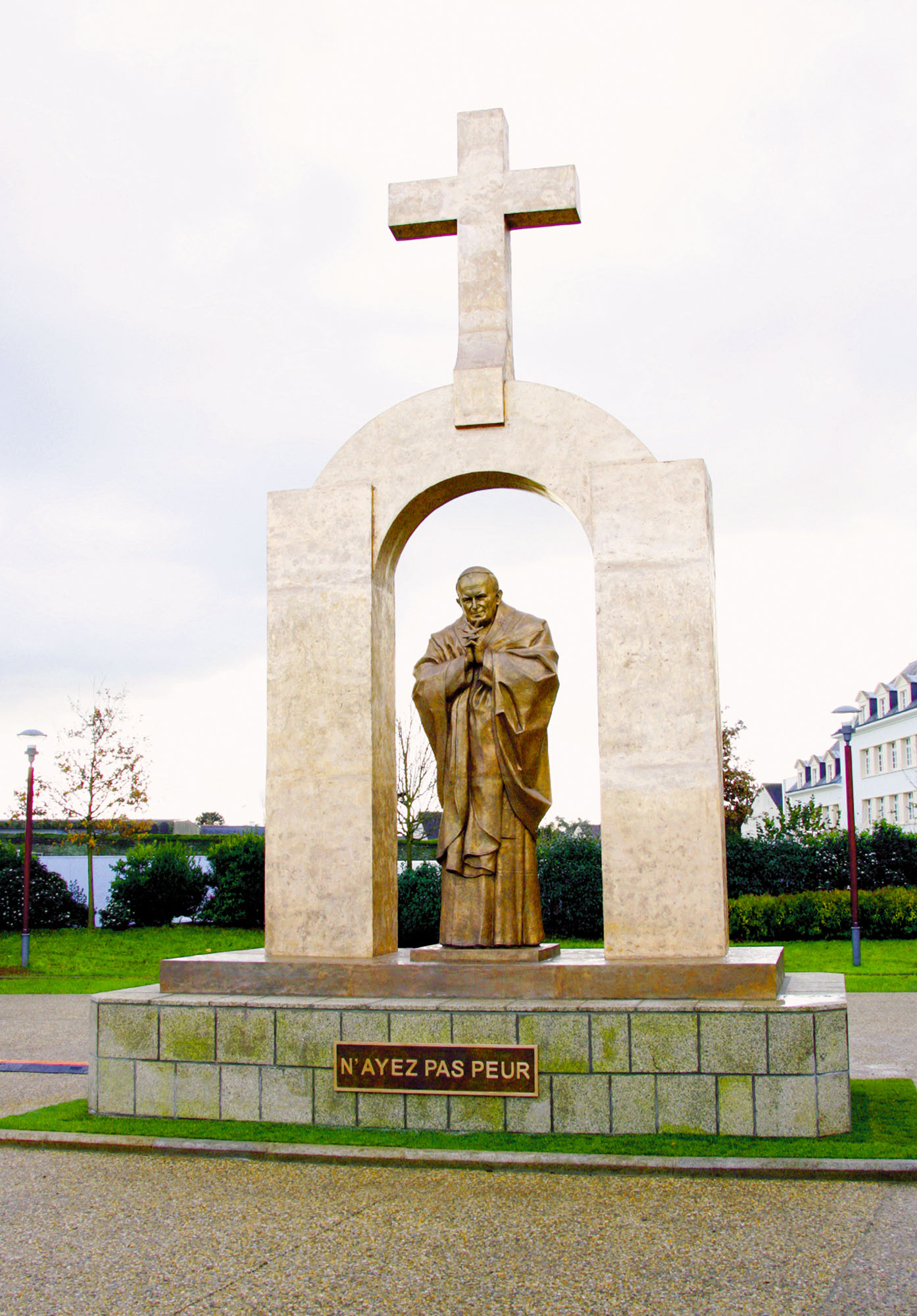 The Telegraph сообщил в понедельник, что Плоэрмель получил статую в подарок в 2006 году, скульптура изображает покойного понтифика молящимся, стоящим под аркой и большим крестом. Проект памятника был выполнен Зурабом Церетели.