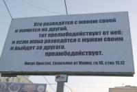 В документах говорится, что индивидуальный предприниматель Ольга Вековшинина разместила в Екатеринбурге на улице Щорса билборд с цитатой из Евангелия от Луки: «Всякий, разводящийся с женою своею и женящийся на другой, прелюбодействует, и всякий, женящийся на разведенной с мужем, прелюбодействует» (Марк. 10.11-12). Женщина аргументировала размещение цитаты тем, что она считает ее социальной рекламой против разводов. В УФАС считают по-другому.