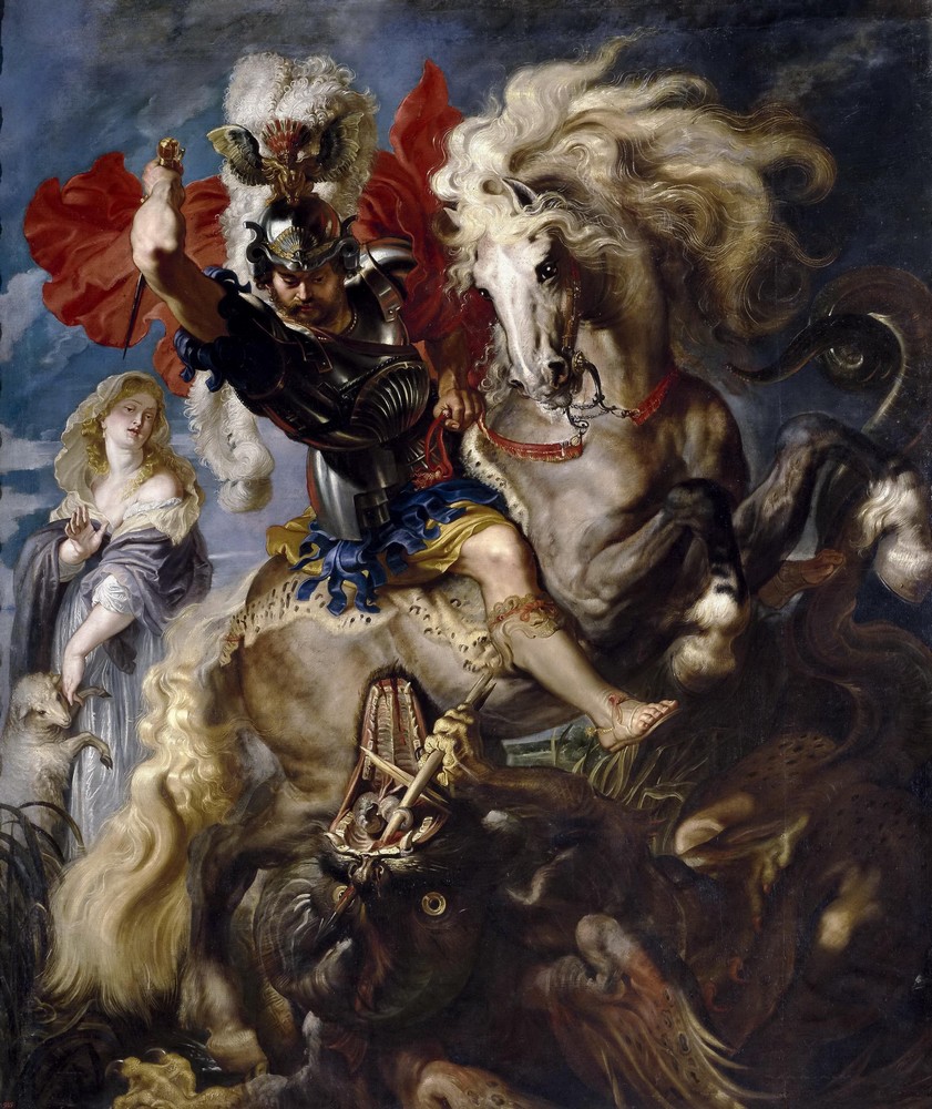 Святой Георгий, известный в России как Георгий Победоносец родился в III веке в христианской семье. После того, как его отец был убит за веру, мать с сыном бежали в Палестину, где Георгий поступил на военную службу. Георгию светила блестящая карьера, но открыто признал себя христианином. Его арестовали, подвергли пыткам и после отрубили голову.
