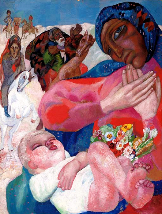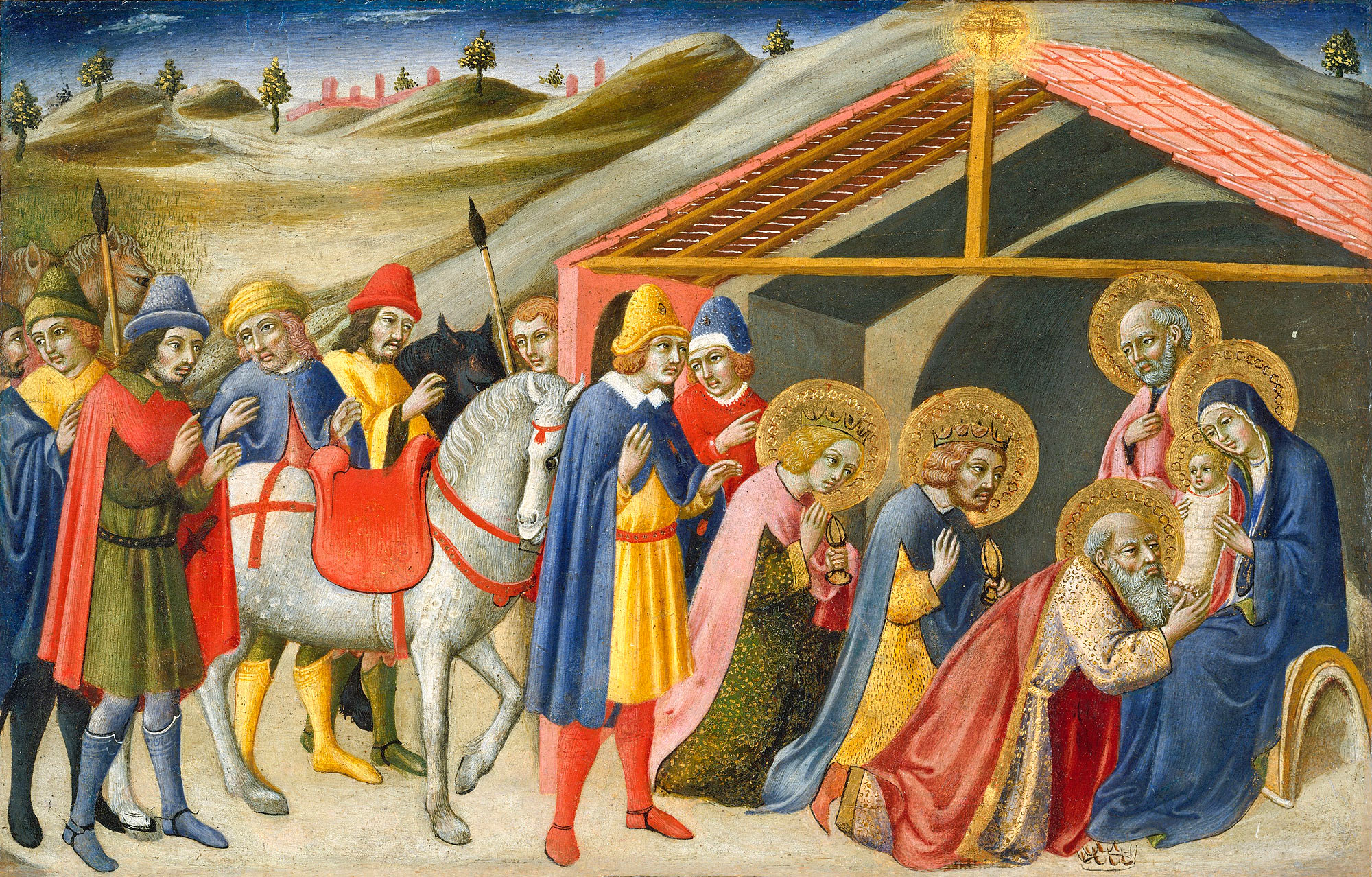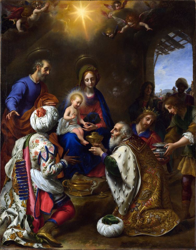 Когда же Иисус родился в Вифлееме Иудейском во дни царя Ирода, пришли в Иерусалим волхвы с востока. И се, звезда, которую видели они на востоке, шла перед ними, как наконец пришла и остановилась над местом, где был Младенец. Увидев же звезду, они возрадовались радостью весьма великою, и, войдя в дом, увидели Младенца с Мариею, Матерью Его, и, пав, поклонились Ему; и, открыв сокровища свои, принесли Ему дары: золото, ладан и смирну.