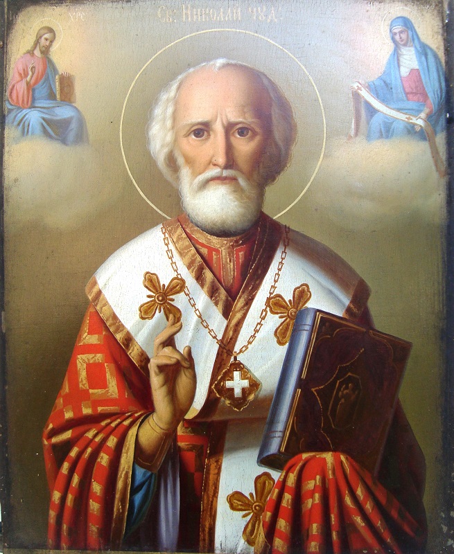 Святой Николай родился в Малой Азии в III веке. Был епископом города Миры. В пастырской деятельности отличался особым милосердием. Легенда гласит, что по ночам он тайно приносил в дома нуждающихся милостыню. Поэтому с давних пор пошёл обычай дарить детям подарки в день памяти святого. Также святой Николай был одарён Богом даром чудотворства. День памяти - 6 декабря